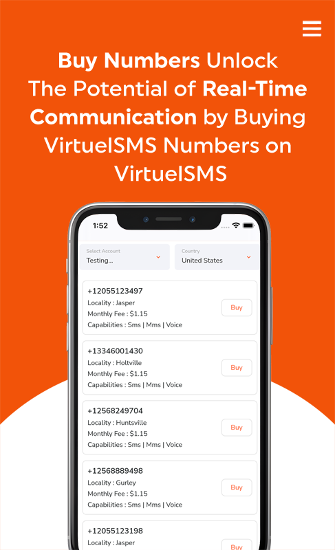 - Buy new Twilio numbers directly from the app